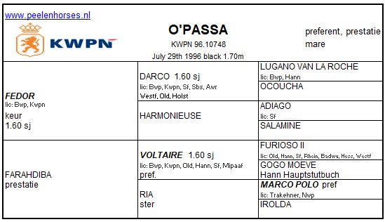 PROGENY OF O'PASSA