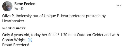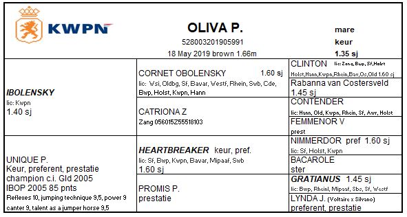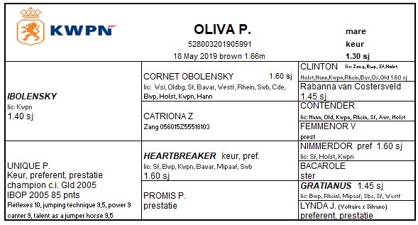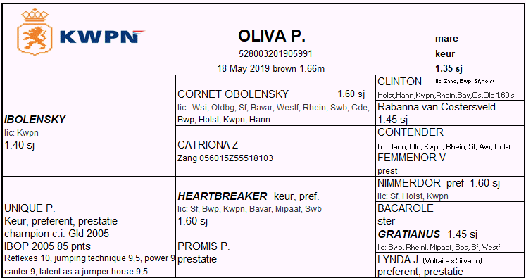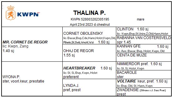 Wyona P. ster prestatie by Heartbreaker) Selected for KWPN